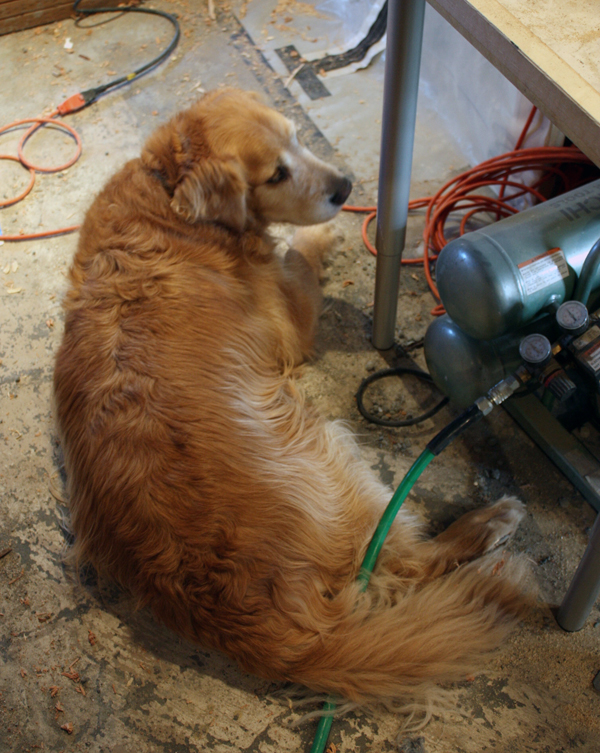 Poor Bails, spending his weekend watching Kyle work. He might be the only dog that willingly will nap next to an air compressor.