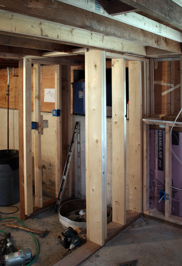 Kyle also framed out the little closet that contains the sewage ejector pump and access to our under-the-mudroom storage.