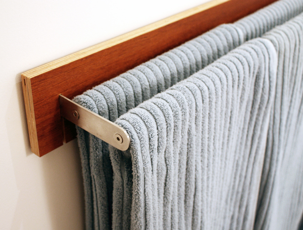 This IKEA hack was a spur of the moment idea, born from a desire to hide the exposed fasteners on the IKEA Grundtal towel rack. We had a scrap piece of teak plywood lying around so we just cut it to fit with two slits that go over the towel rack. Shortly after finishing the bathroom a friend commented that we should have made the teak plywood a bit longer and installed two hooks. Damn. That is a good idea. Oh well.