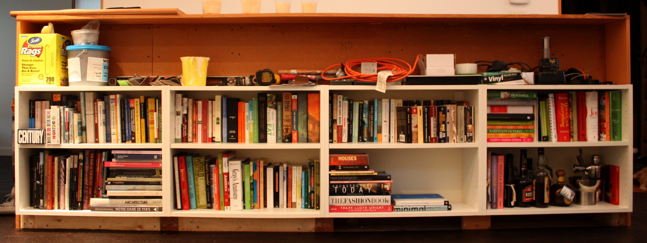 14. Oh wow, thanks for the all the feedback everyone. Lots of good suggestions. I did purge a bunch of books pre-demo. I took them to a consignment place, which was probably not worth the 4 trips back and forth to the car I had to make, but oh well.