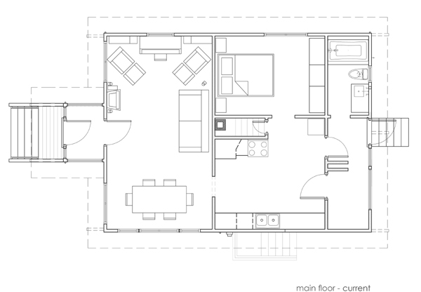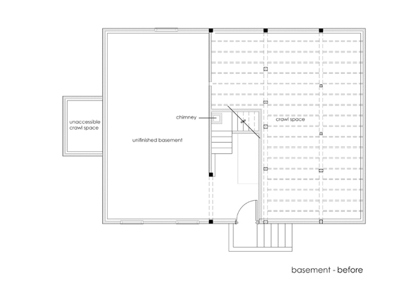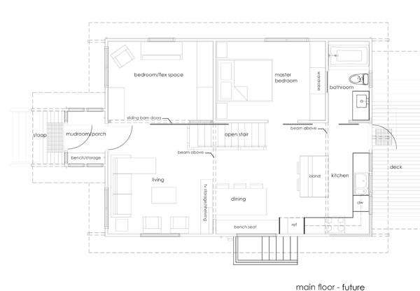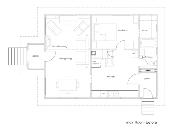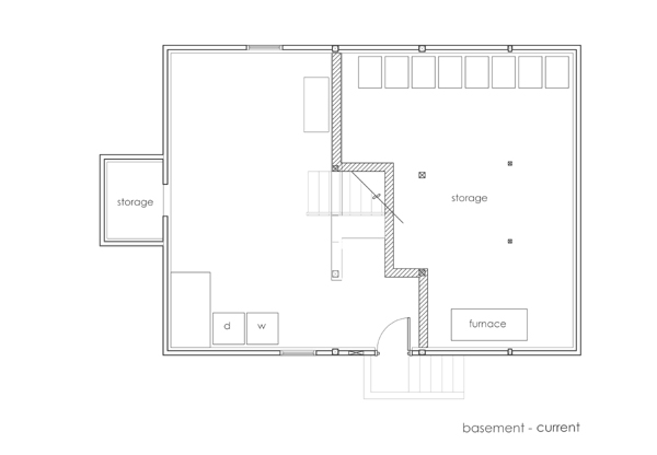 In the design section we show “before” and “after” floor plans but the reality is, we’re currently somewhere in between the two. So we put together a hybrid set of plans to give an idea of how far we’ve come and how far we still have to go. [click on images to enlarge.]