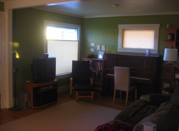 Before moving in, we tore up the dark green carpet, got rid of the green couch, then proceeded to paint the walls green. Huh.