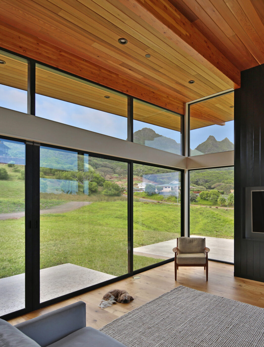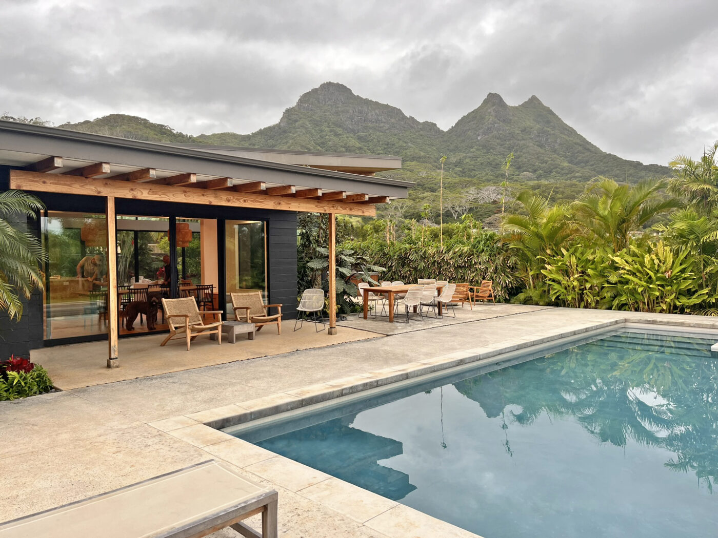 Located on the windward side of Oahu, this modern home is nestled into the Olomana Heights neighborhood with sweeping views of Olomana Ridge and the Ko’olau Range. Phase 2 work included a pool and native landscaping.