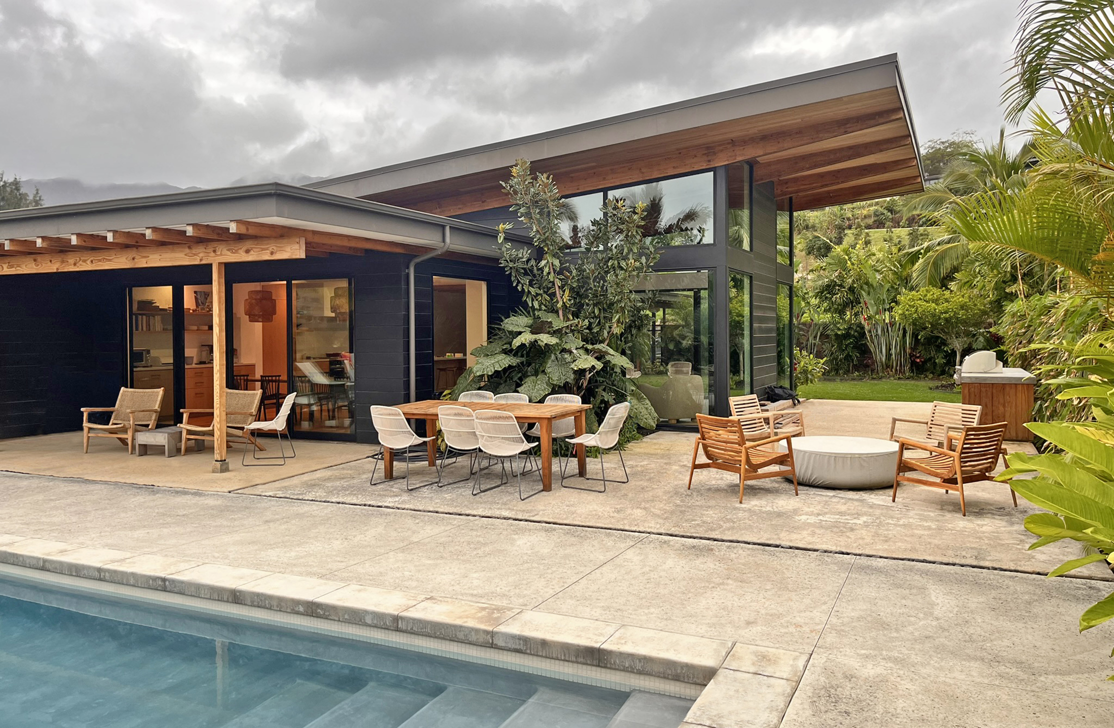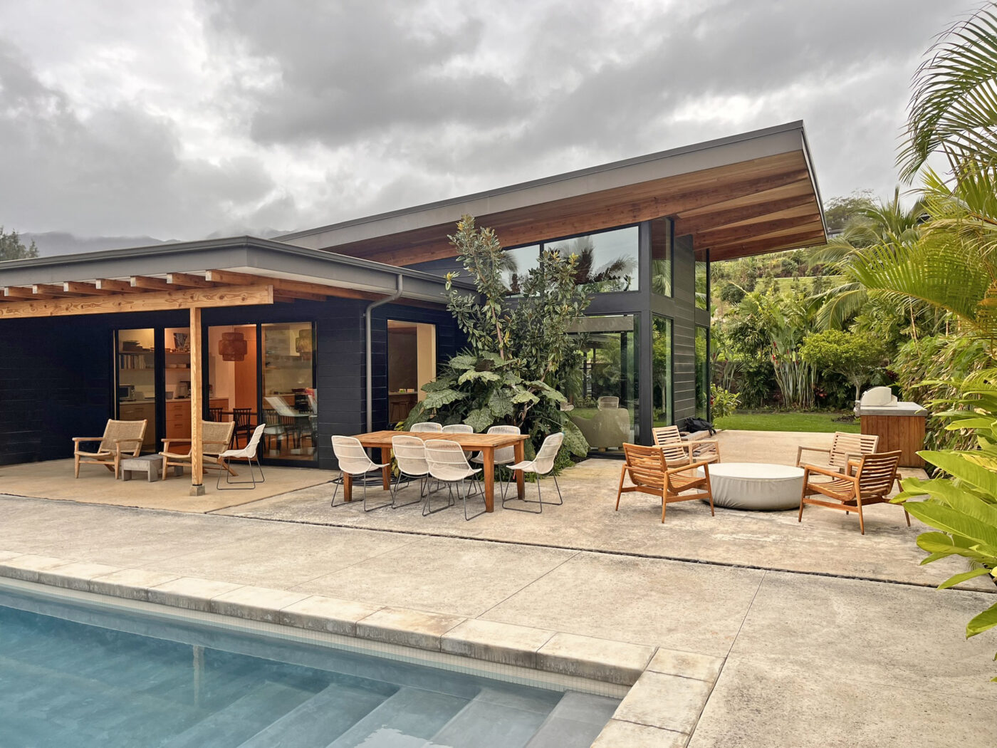 Located on the windward side of Oahu, this modern home is nestled into the Olomana Heights neighborhood with sweeping views of Olomana Ridge and the Ko’olau Range. Phase 2 work included a pool and native landscaping.