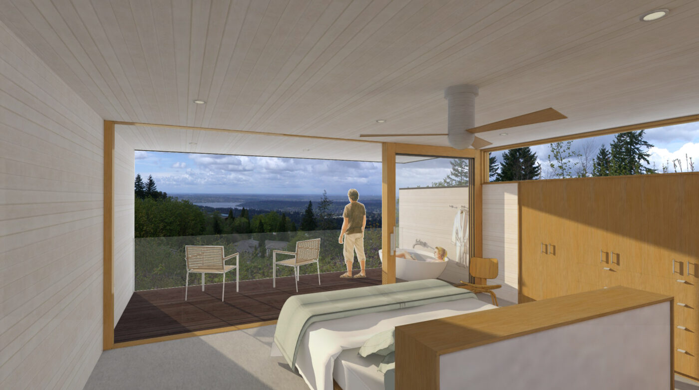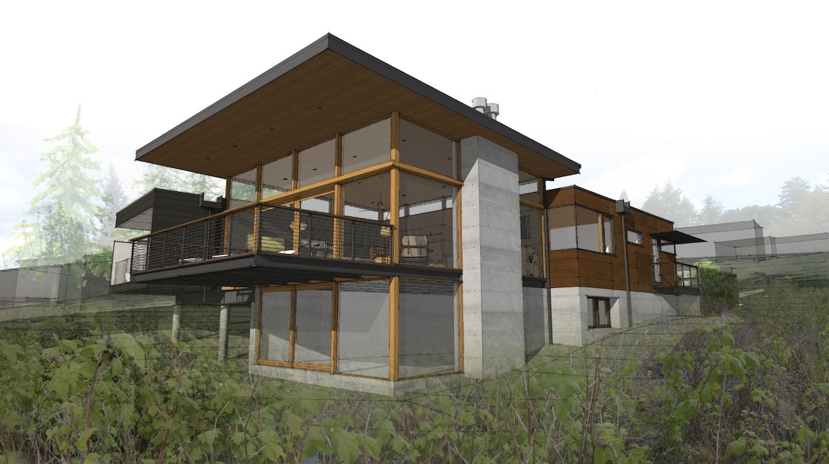For the last 60 years our client’s lot was deemed unbuildable. It contains a steep slope, wetland and a stream, but it also has panoramic views across Lake Washington to Mercer Island and downtown Seattle. With patience, diligent zoning research and correspondence with the local jurisdiction and Hilltop Community design review board, Kyle and the clients were able to come up with a design that satisfied everyone’s requirements.