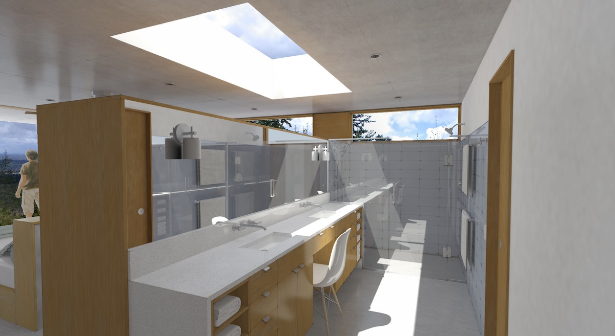 For the last 60 years our client’s lot was deemed unbuildable. It contains a steep slope, wetland and a stream, but it also has panoramic views across Lake Washington to Mercer Island and downtown Seattle. With patience, diligent zoning research and correspondence with the local jurisdiction and Hilltop Community design review board, Kyle and the clients were able to come up with a design that satisfied everyone’s requirements.